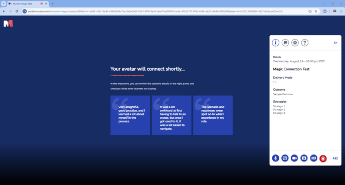 You will then be taken to the Mursion Magic Web browser and be prompted to select the microphone, speaker, and camera you would like to use for your session.